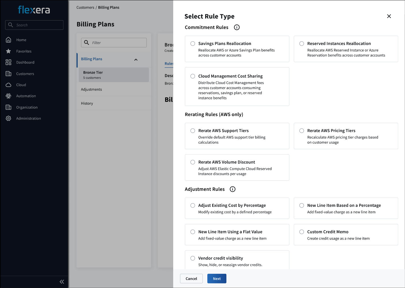 MSPs working across AWS, Azure, and Google Cloud need a way to price services differently for each customer segment while keeping billing consistent and manageable. Billing Plans solve this by grouping customers and applying a shared set of cloud billing rules to them each billing period, with the platform ensuring that every customer can only belong to one plan at a time.